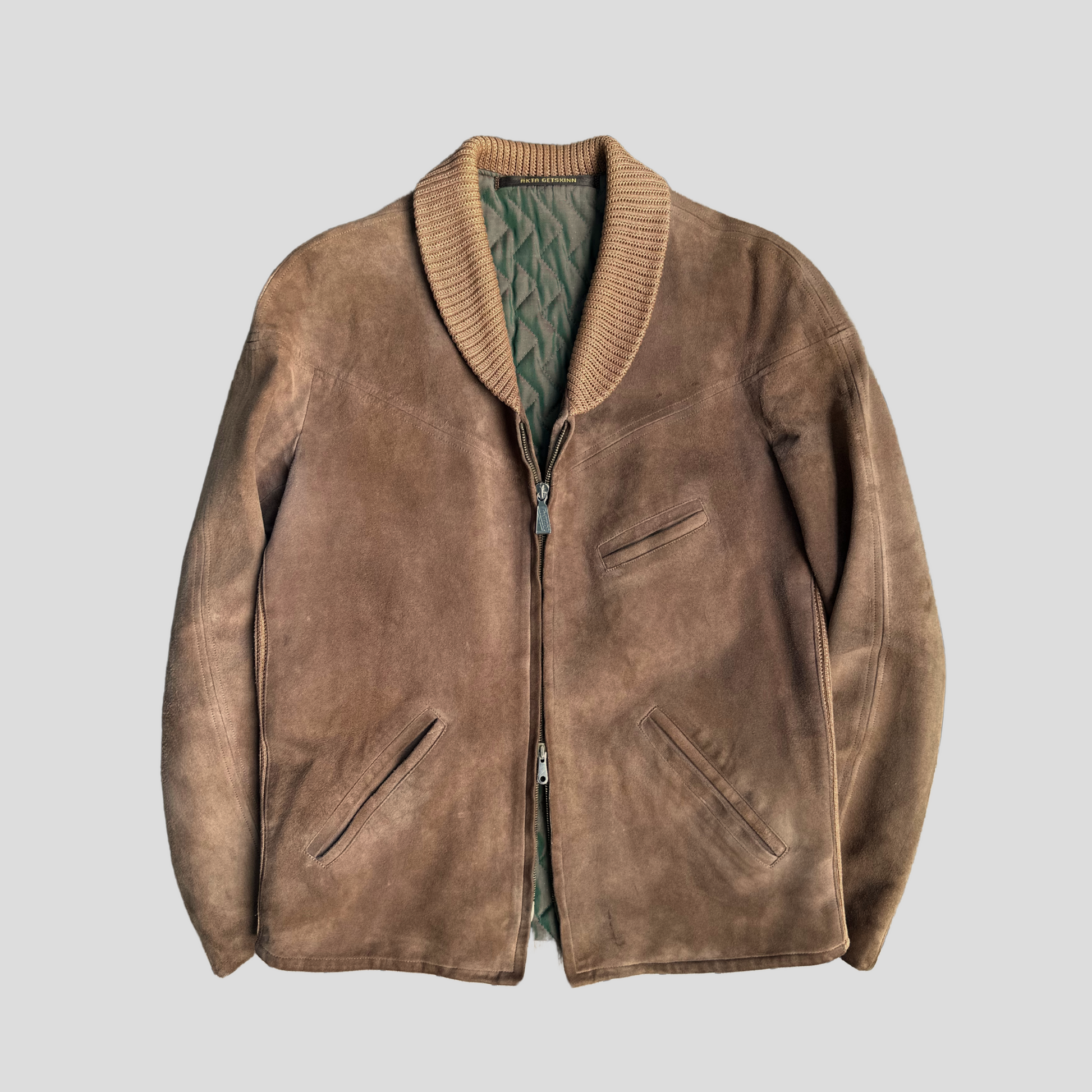 Classic Swedish suede jacket from the 1950s. Features quality goatskin and a stunning quilted lining.