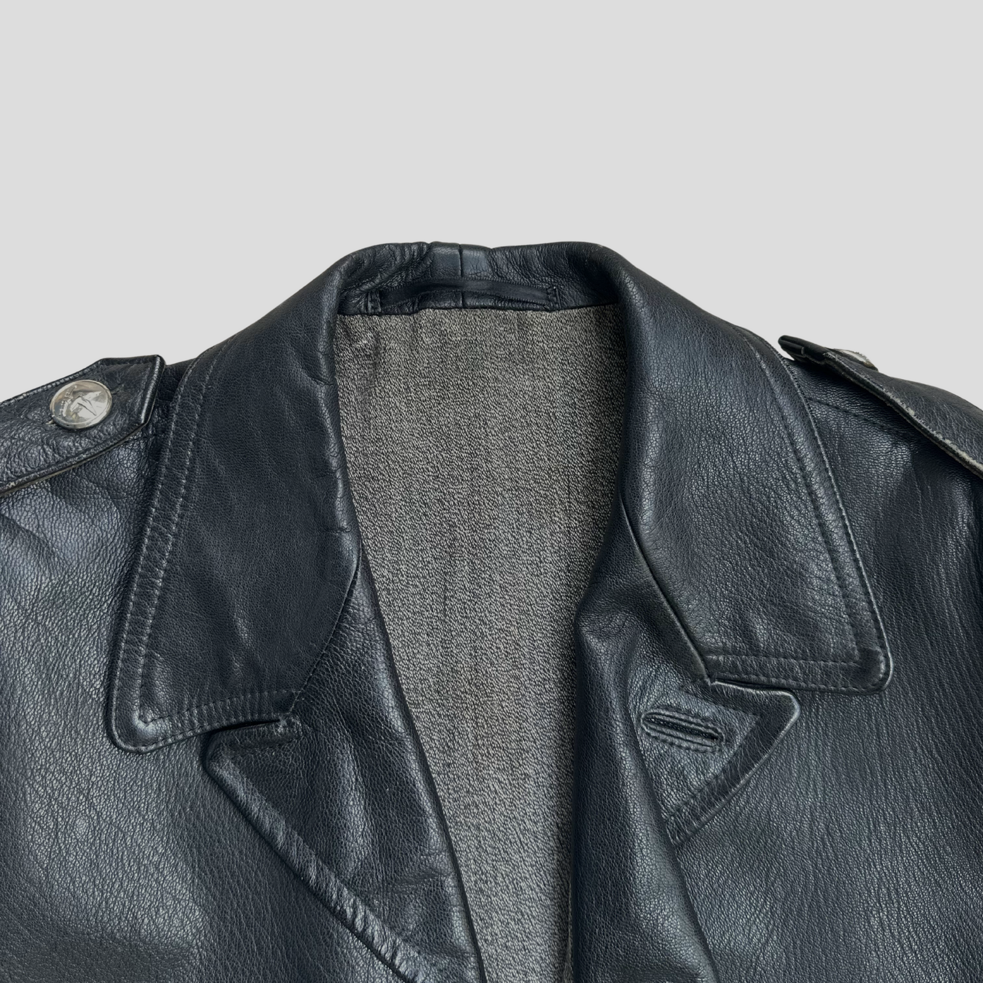 Single breasted goatskin jacket from the 60s. Excellent condition on both the leather and the lining.