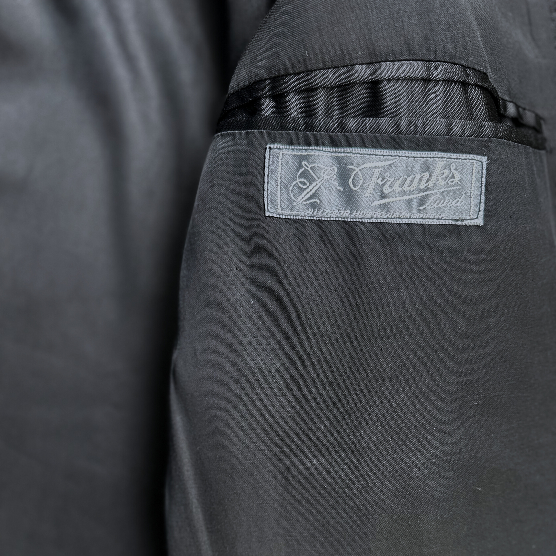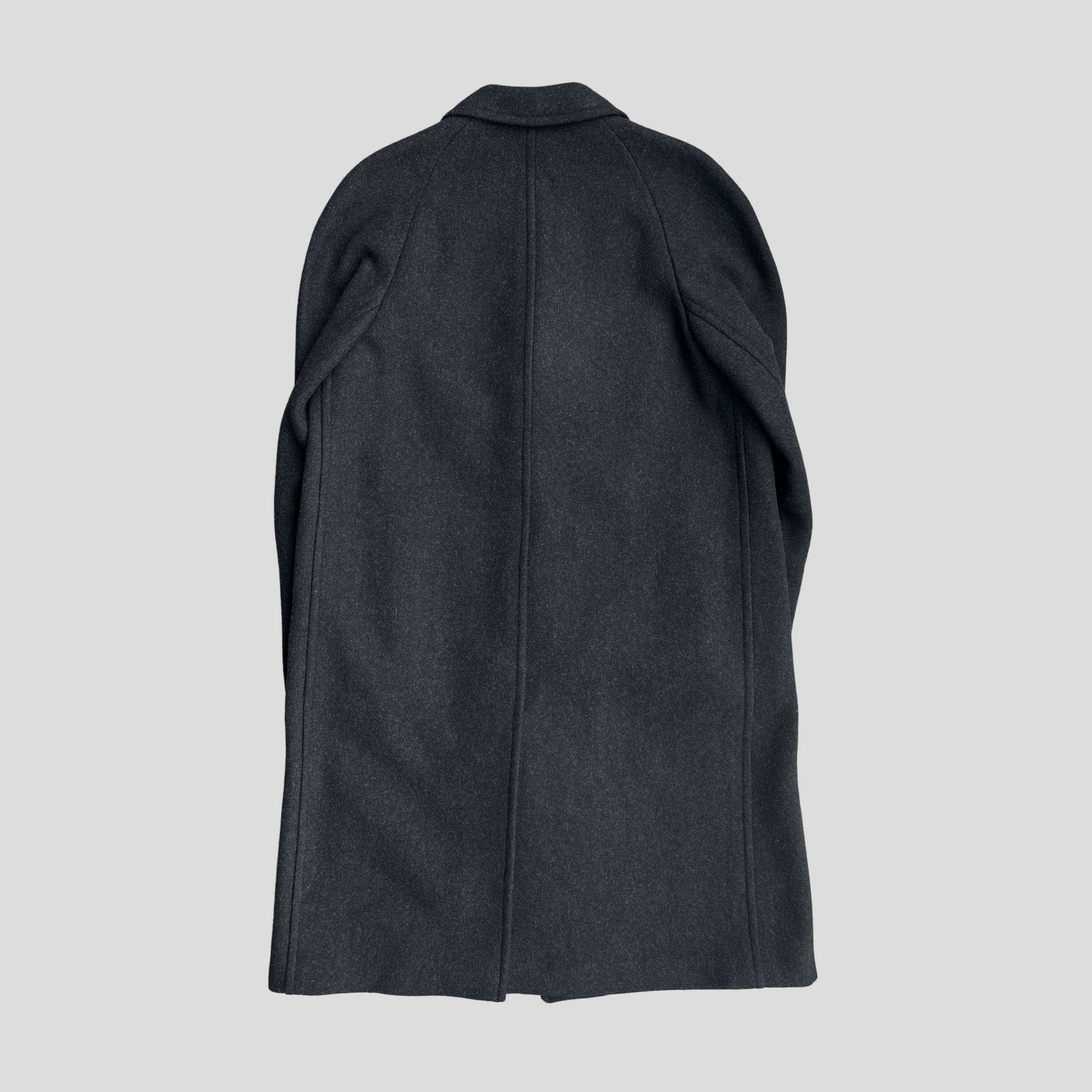 Incredible dark grey 1940s raglan coat from Lund, Sweden. Thick wool with a twill weave. Single breasted and fully lined, the coat also features two inner pockets on each side. Made in Sweden.